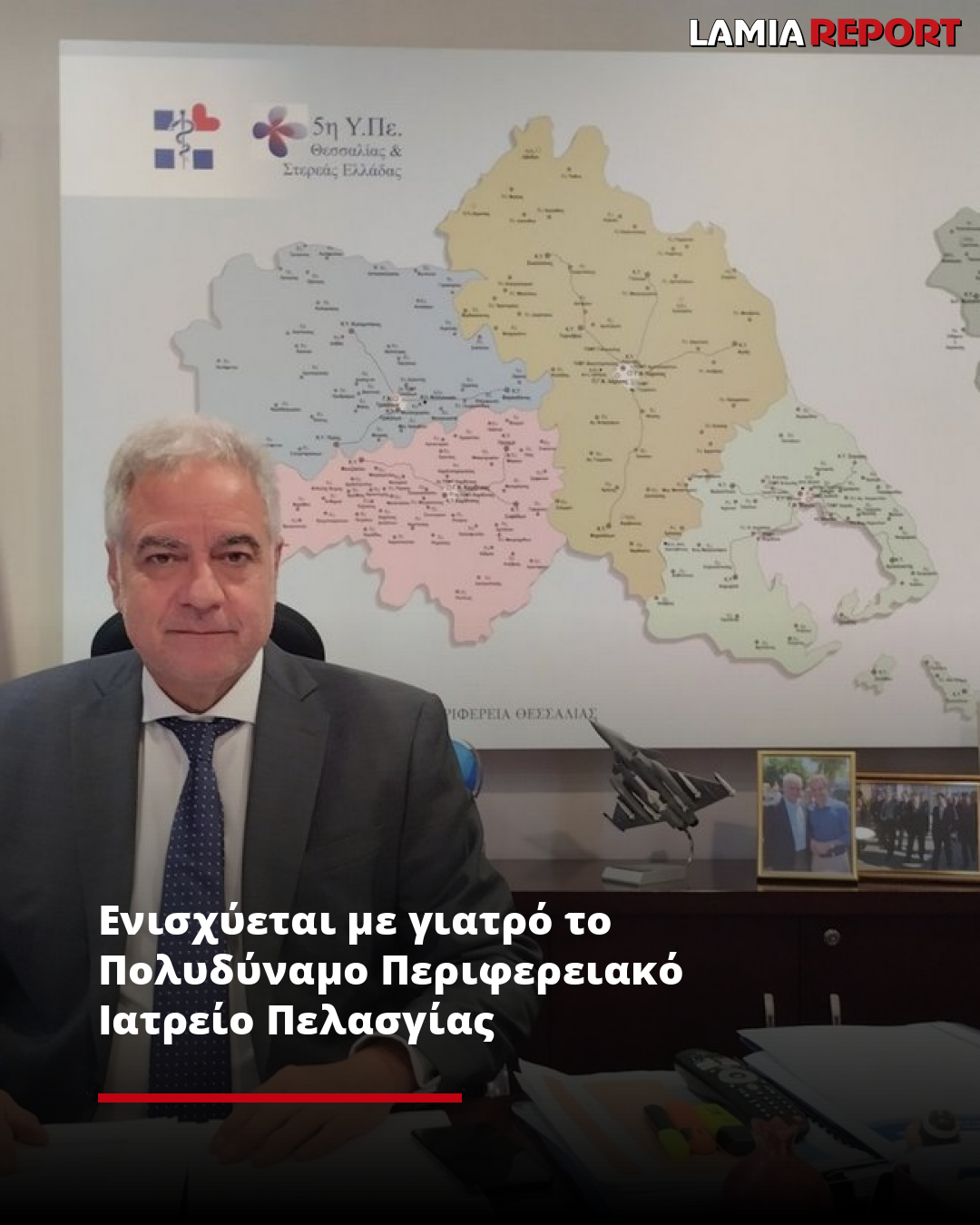 Στο πλαίσιο της ενίσχυσης του Πολυδύναμου Περιφερειακού Ιατρείου Πελασγίας, ο Διοικητής της 5ης Υ.Πε. Θεσσαλίας και Στερεάς Ελλάδας Φώτης Σερέτης, ανακοίνωσε σήμερα τη συνεργασία της 5ης Υ.Πε με έναν (1) ιδιώτη ιατρό ειδικότητας Γενικής Ιατρικής ή Εσωτερικής Παθολογίας, με καθεστώς έκδοσης απόδειξης παροχής υπηρεσιών.