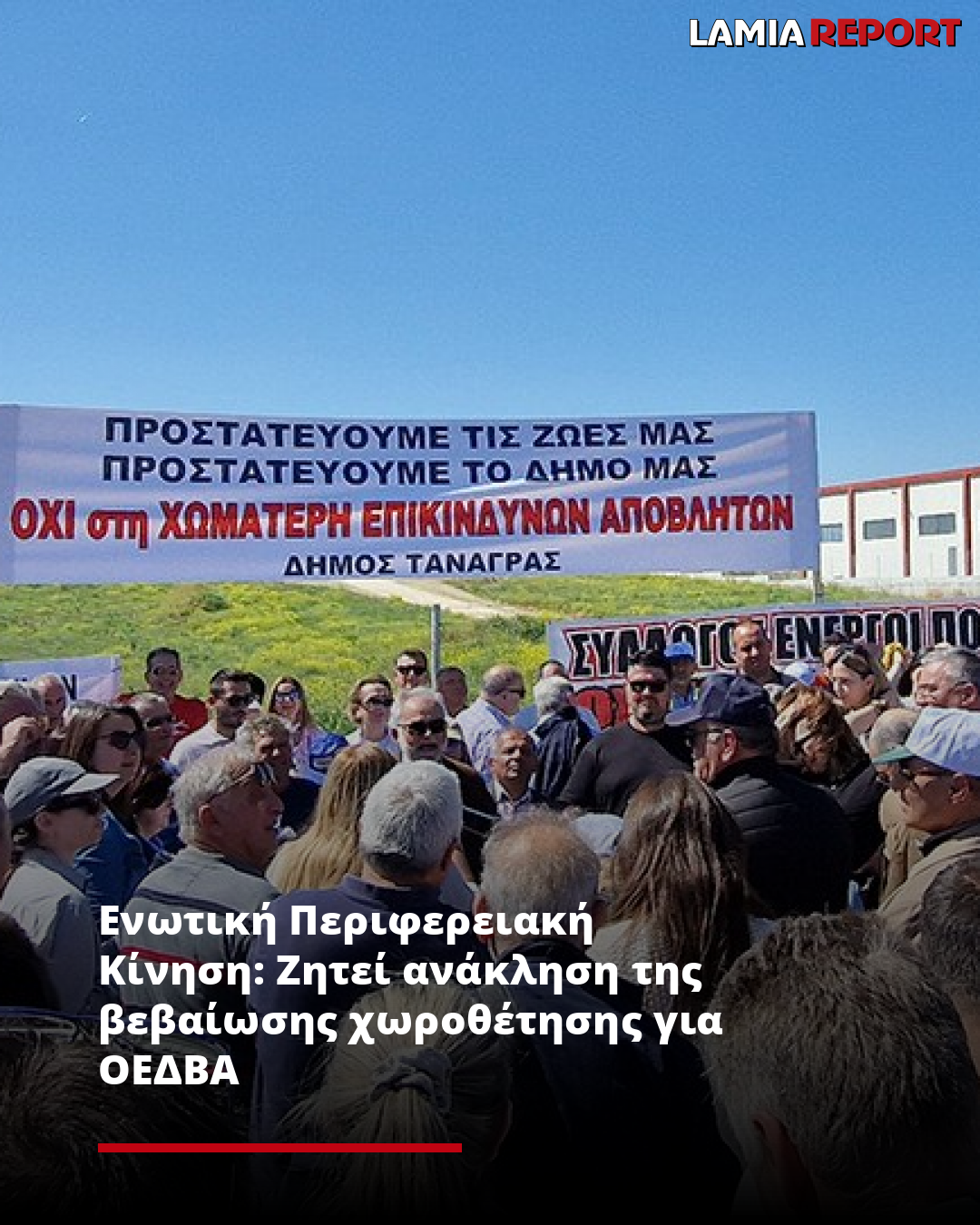 Ενωτική Περιφερειακή Κίνηση: Ζητεί ανάκληση της βεβαίωσης χωροθέτησης για ΟΕΔΒΑ