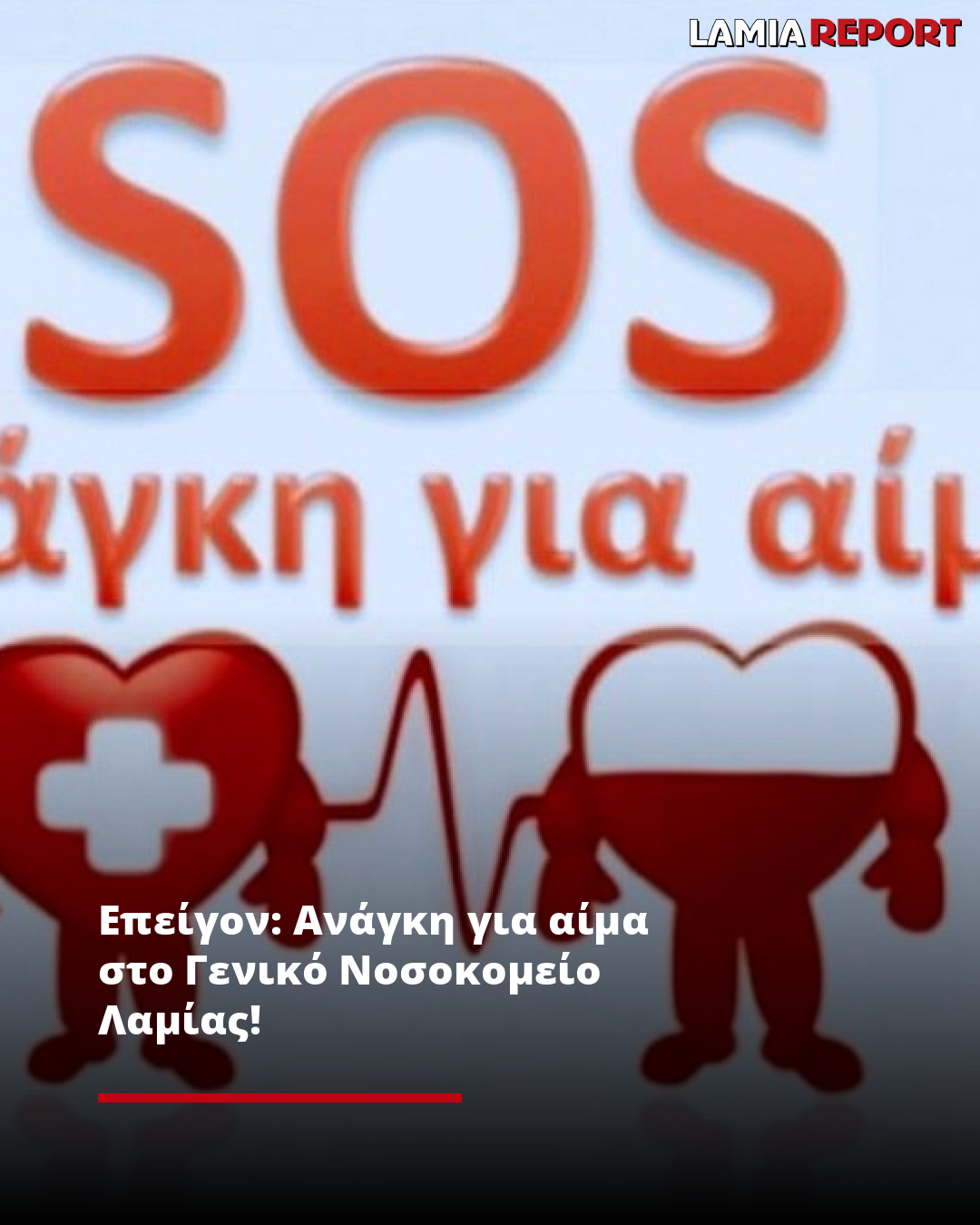 Μεγάλη ανάγκη για αίμα στο Γενικό Νοσοκομείο Λαμίας, όπου νοσηλεύεται.