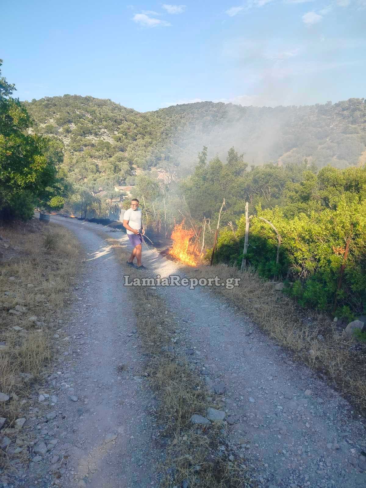 Πριν φτάσουν τα τέσσερα πυροσβεστικά οχήματα του Κλιμακίου Στυλίδας από το χώρο διασποράς τους, κάτοικοι με πυροσβεστήρες και κλαδιά επενέβησαν προκειμένου να ελέγξουν τις πρώτες φλόγες.