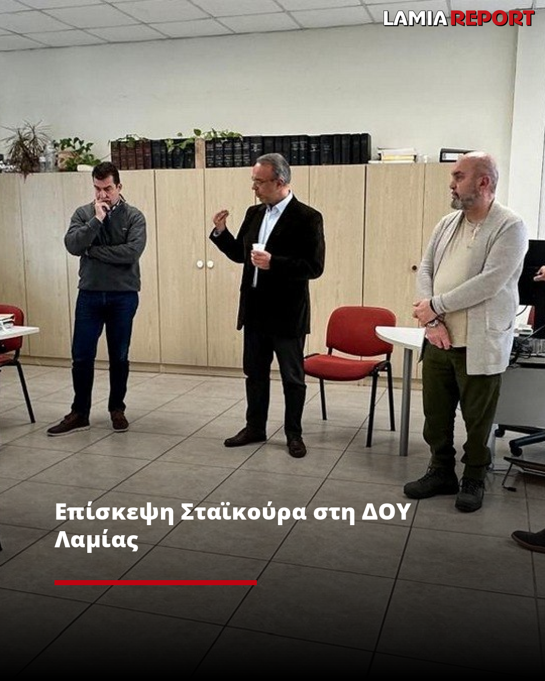 Τη ΔΟΥ Λαμίας επισκέφθηκε σήμερα ο Βουλευτής Φθιώτιδας της Νέας Δημοκρατίας, Χρήστος Σταϊκούρας, στο πλαίσιο της διαρκούς επαφής του με τις φορολογικές υπηρεσίες και τους εργαζόμενους που βρίσκονται στην πρώτη γραμμή της προσπάθειας ενίσχυσης της φορολογικής συμμόρφωσης και της αποτελεσματικής λειτουργίας του Κράτους.