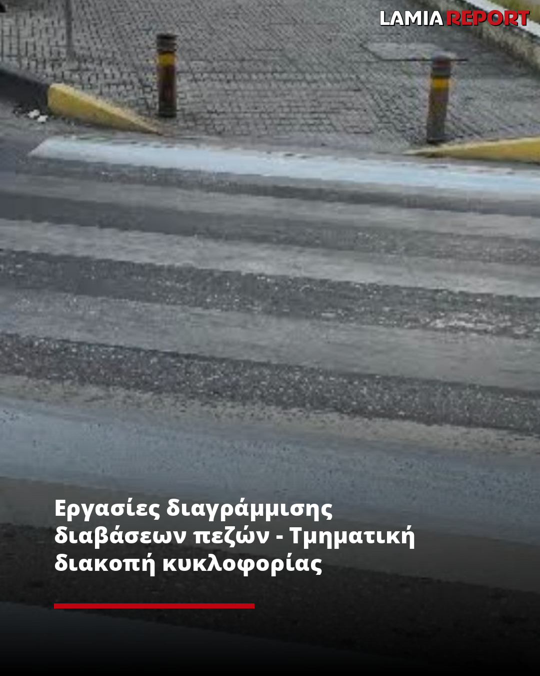 Η Διεύθυνση Υποδομών και Τεχνικών Έργων του Δήμου Λαμιέων ενημερώνει ότι θα πραγματοποιηθούν εργασίες διαγράμμισης διαβάσεων και προετοιμασίας οδοστρώματος, στις εξής οδούς: