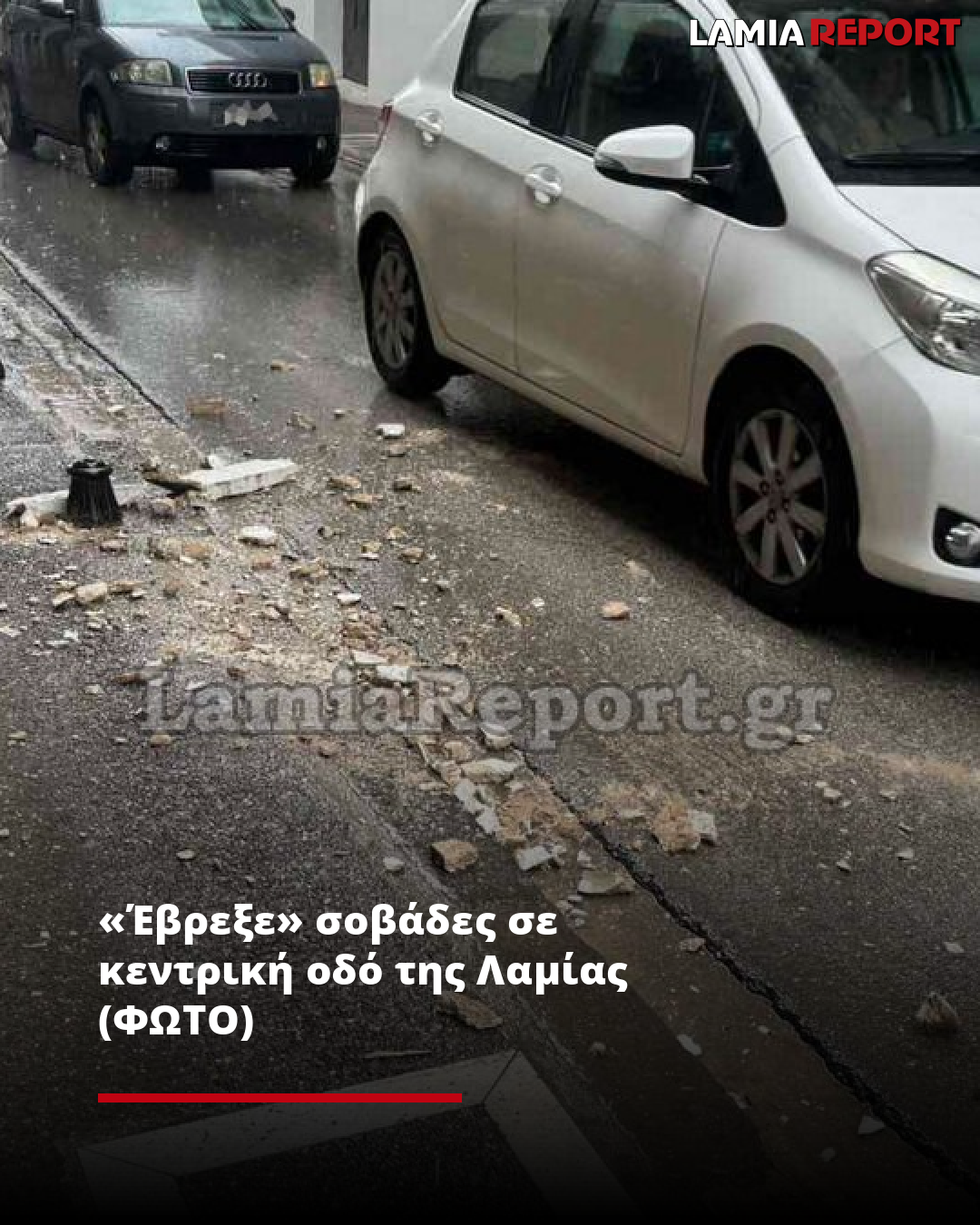 «Έβρεξε» σοβάδες σε κεντρική οδό της Λαμίας (ΦΩΤΟ)