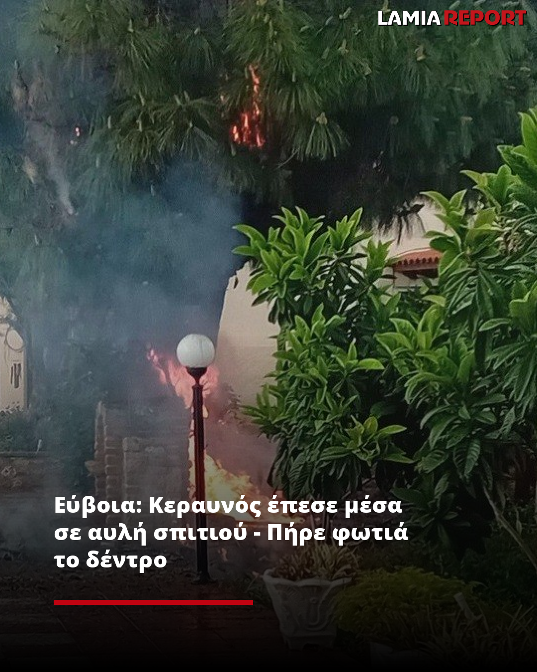 Εύβοια: Κεραυνός έπεσε μέσα σε αυλή σπιτιού - Πήρε φωτιά το δέντρο