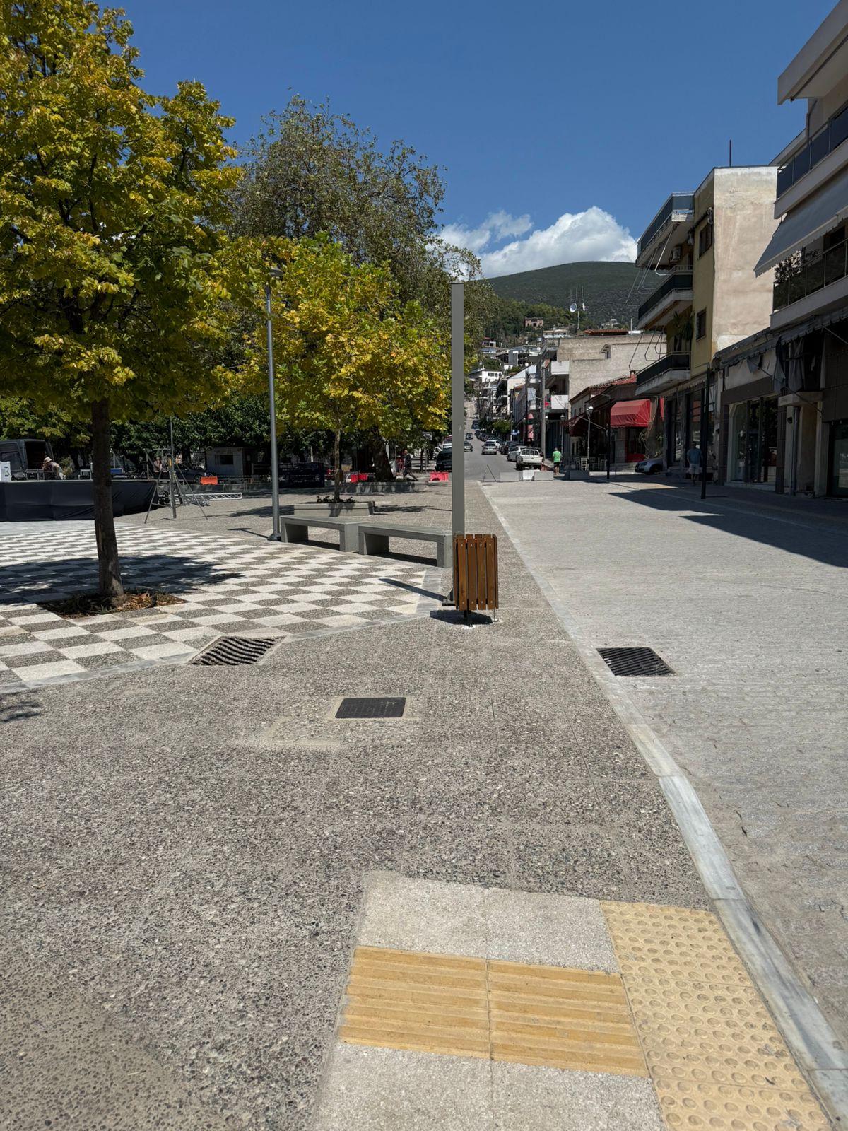 Προβλέφθηκαν επίσης παρεμβάσεις και ράμπες για την απρόσκοπτη πρόσβαση συμπολιτών μας με κινητικά προβλήματα, ενώ εγκαταστάθηκε αρδευτικό δίκτυο των δέντρων, των θάμνων και των διακοσμητικών φυτών που φυτεύτηκαν στα πεζοδρόμια, όσο και στα παρτέρια.