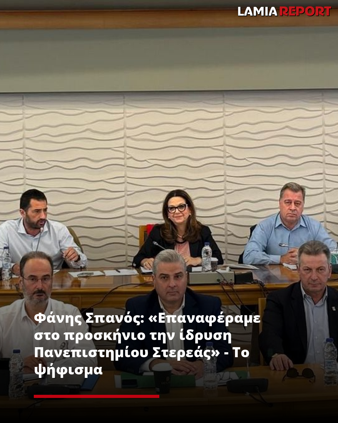 «Επαναφέραμε στο προσκήνιο την ανάγκη ίδρυσης Πανεπιστημίου Στερεάς Ελλάδας και το κάναμε δυναμικά, αλλά και απολύτως θεσμικά. Με στοχευμένη τοποθέτηση στην αρμόδια Επιτροπή της Βουλής και με το σημερινό ψήφισμα του Περιφερειακού μας συμβουλίου», δήλωσε ο Περιφερειάρχης Στερεάς Ελλάδας Φάνης Σπανός και πρόσθεσε: