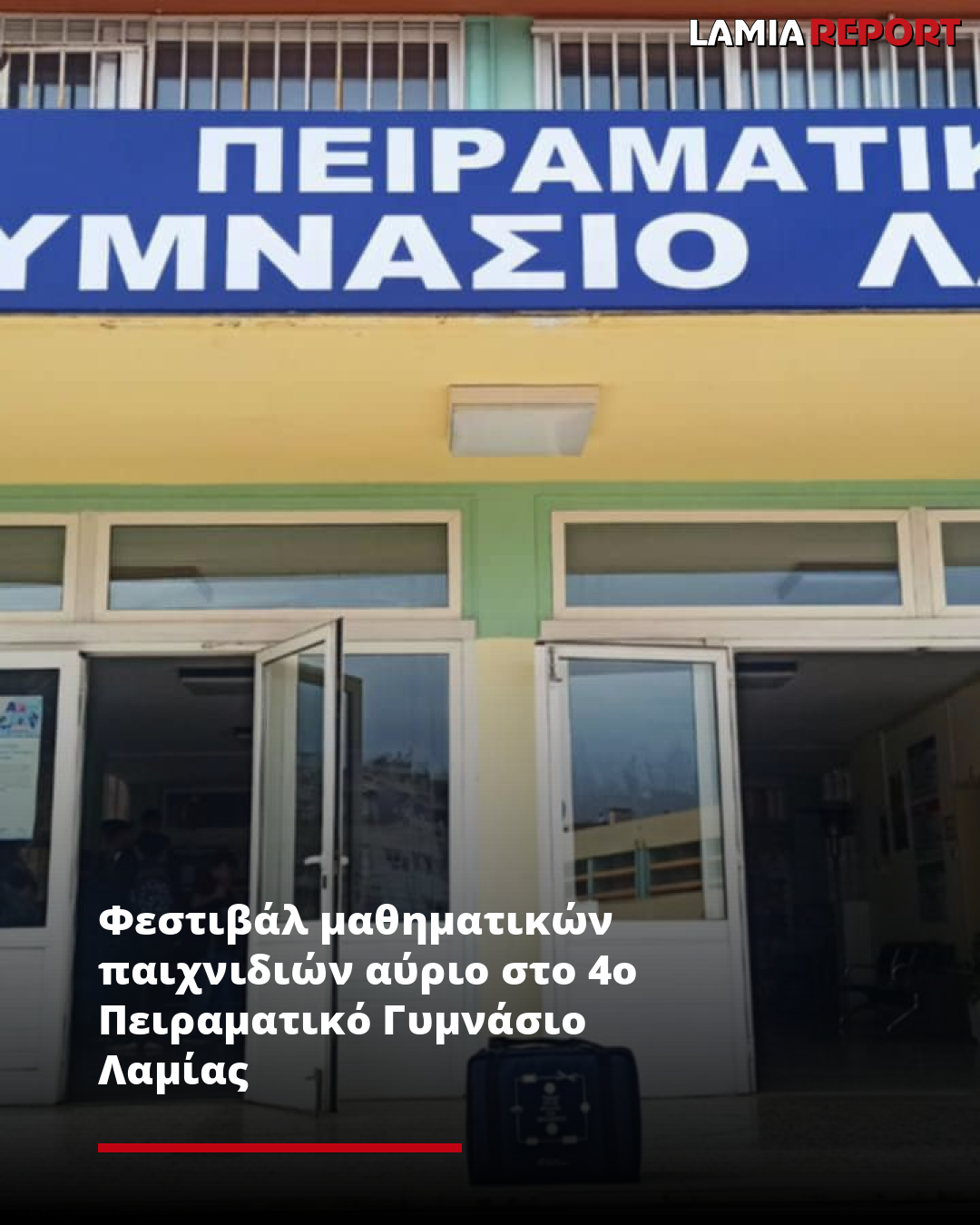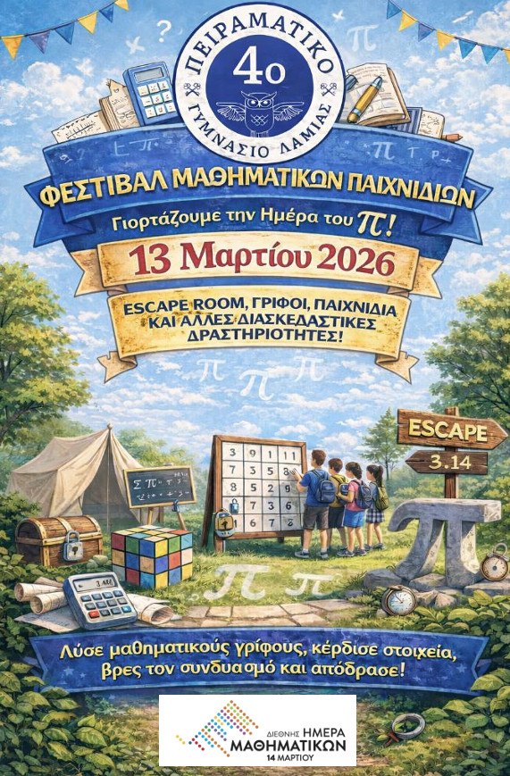 Μια ξεχωριστή εκπαιδευτική δράση που φέρνει τα μαθηματικά πιο κοντά στους μαθητές/τριες διοργανώνει για πρώτη φορά το 4ο Πειραματικό Γυμνάσιο Λαμίας, εγκαινιάζοντας το Φεστιβάλ Μαθηματικών Παιχνιδιών, την Παρασκευή 13 Μαρτίου, στον χώρο του σχολείου.