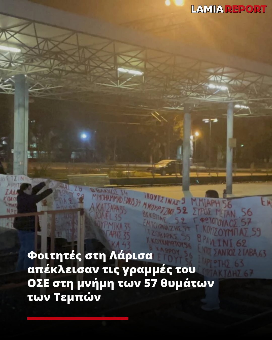 Φοιτητές της Ιατρικής σχολής Λάρισας πραγματοποίησαν το απόγευμα μια δυναμική διαμαρτυρία, αποκλείοντας τις σιδηροδρομικές γραμμές μπροστά από τον Σταθμό του ΟΣΕ στη Λάρισα, στη μνήμη των 57 θυμάτων της τραγωδίας των Τεμπών.