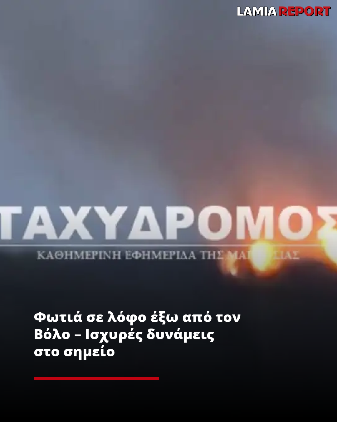 Η φωτιά καίει χαμηλή βλάστηση σε δύσβατο σημείο και μακριά από κατοικημένη περιοχή στο Βόλο.