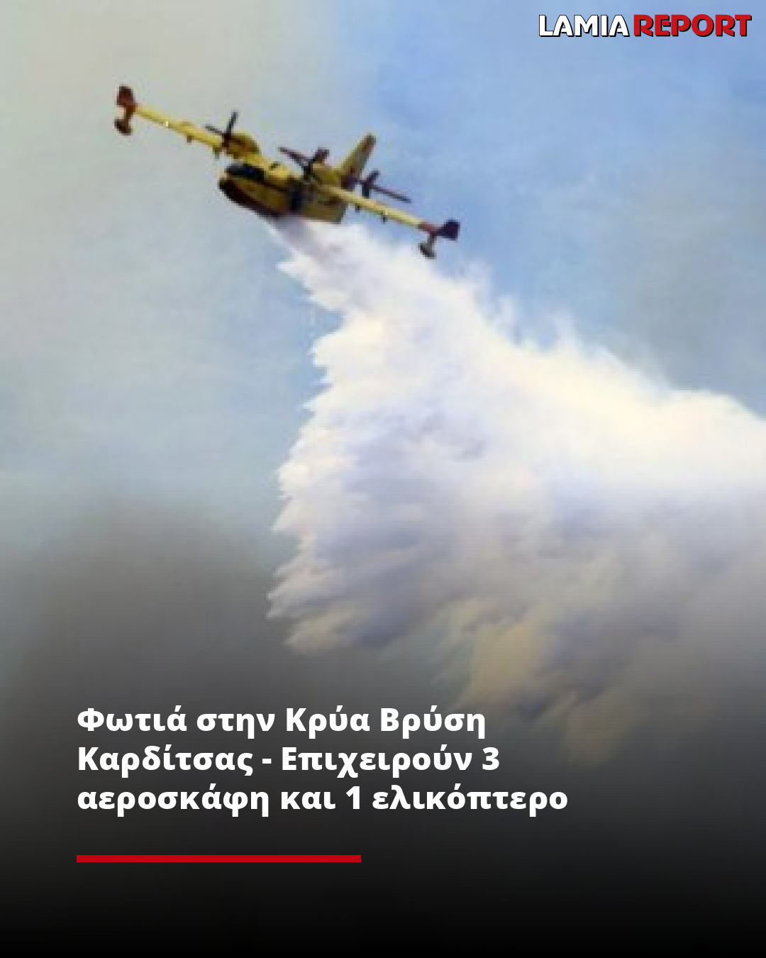 Φωτιά στην Κρύα Βρύση Καρδίτσας - Επιχειρούν 3 αεροσκάφη και 1 ελικόπτερο