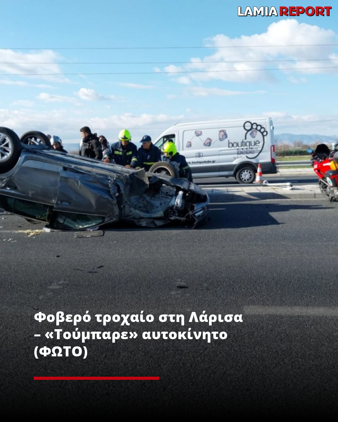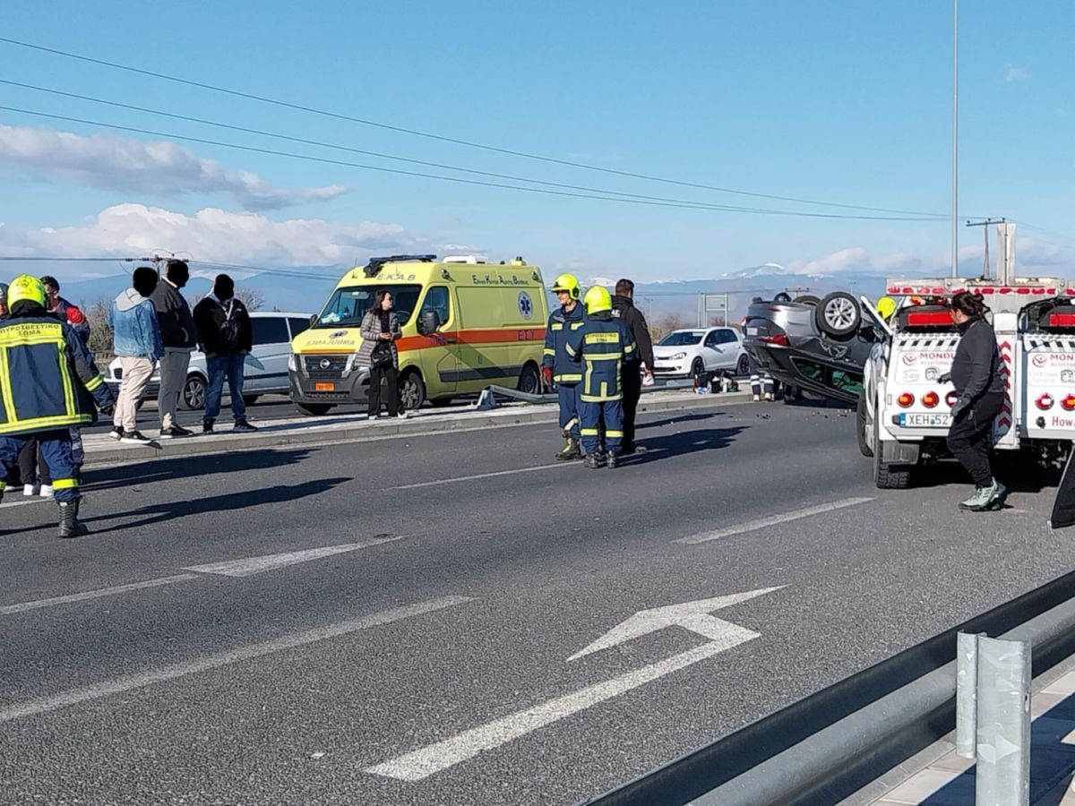 Φοβερό τροχαίο στη Λάρισα – «Τούμπαρε» αυτοκίνητο (ΦΩΤΟ)