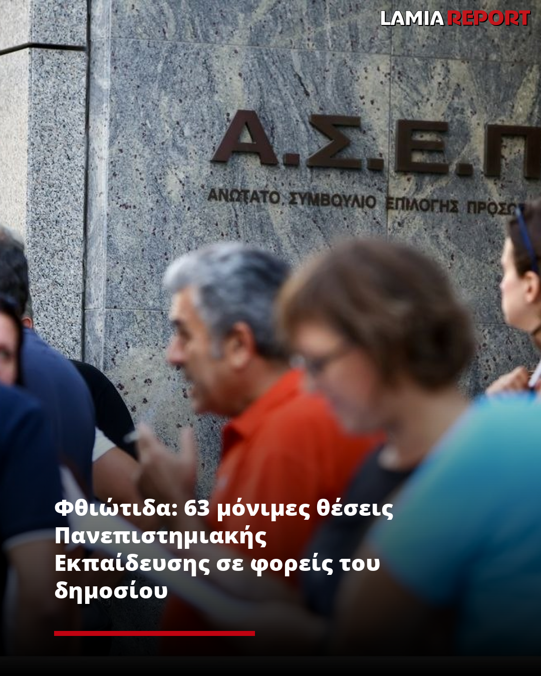 Φθιώτιδα: 63 μόνιμες θέσεις Πανεπιστημιακής Εκπαίδευσης σε φορείς του δημοσίου
