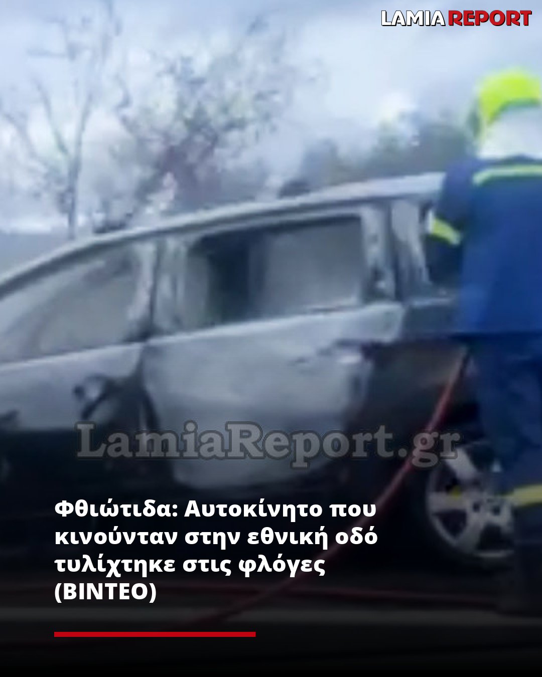 Φθιώτιδα: Αυτοκίνητο που κινούνταν στην εθνική οδό τυλίχτηκε στις φλόγες (ΒΙΝΤΕΟ)