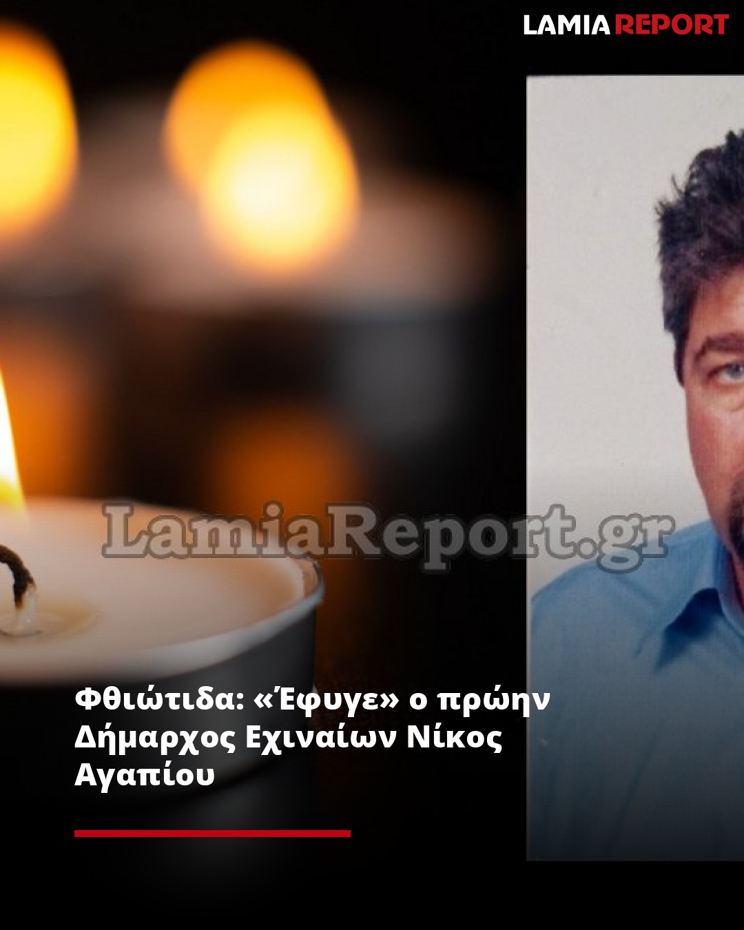Βαρύ πένθος στην Ανατολική Φθιώτιδα, καθώς «έφυγε» από τη ζωή σε ηλικία 68 ετών, ο πρώην Δήμαρχος Εχιναίων Νίκος Αγαπίου.