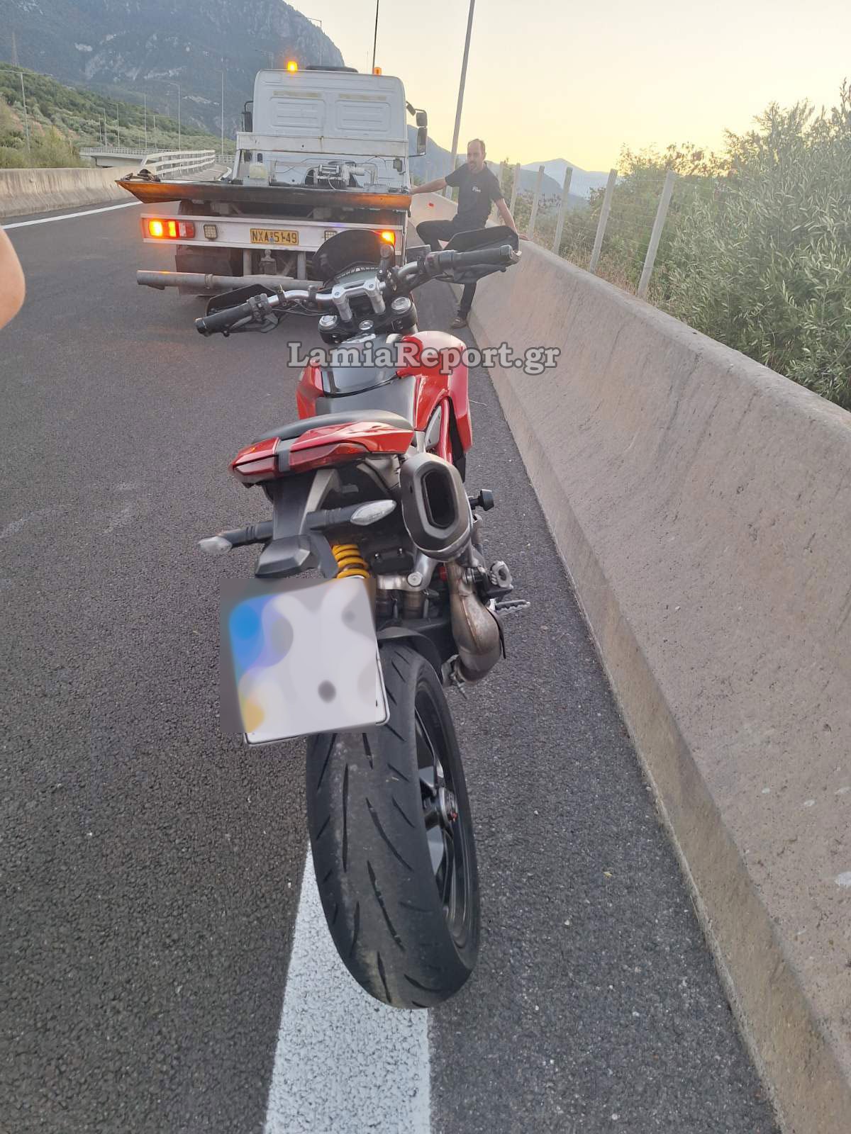 Ειδοποιήθηκε ασθενοφόρο για τη διακομιδή του στο Νοσοκομείο Λαμίας, ενώ με μέριμνα της Τροχαίας Αυτοκινητοδρόμων επενέβη οδική βοήθεια για τη απομάκρυνση του δικύκλου από το σημείο του ατυχήματος.