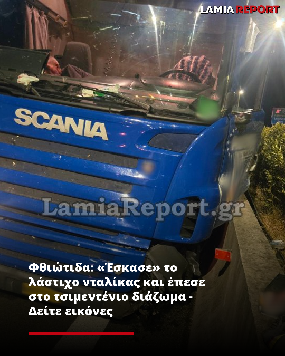 Φθιώτιδα: «Έσκασε» το λάστιχο νταλίκας και έπεσε στο τσιμεντένιο διάζωμα - Δείτε εικόνες