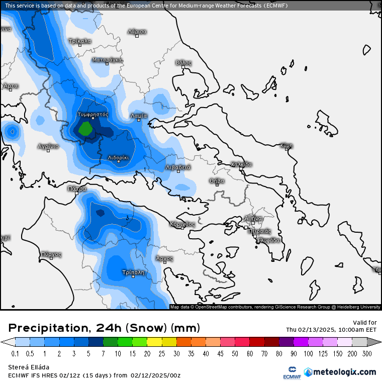 Η μεσοπρόθεσμη πρόβλεψη του Ευρωπαϊκού Κέντρου Προγνώσεων Καιρού, συμφωνεί για χιονοπτώσεις στον ορεινό όγκο που καλύπτει τέσσερις νομούς, Ευρυτανία, Ορεινή Ναυπακτία, Δυτική Φθιώτιδα και Φωκίδα, αλλά και χαμηλότερα. Δείτε το χάρτη: