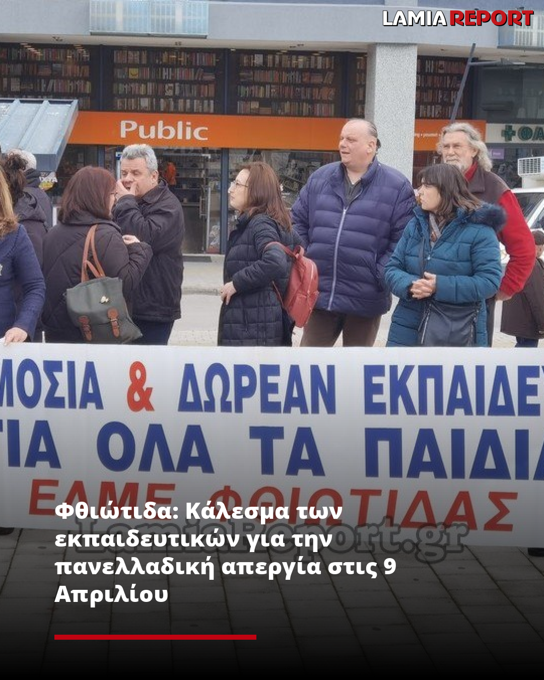 Η ΕΛΜΕ Φθιώτιδας καλεί στην πανελλαδική απεργία της 9ης Απριλίου αλλά και στην απεργιακή συγκέντρωση του Εργατοϋπαλληλικού Κέντρου Λαμίας στις 10:00’ το πρωί στην πλατεία Πάρκου.