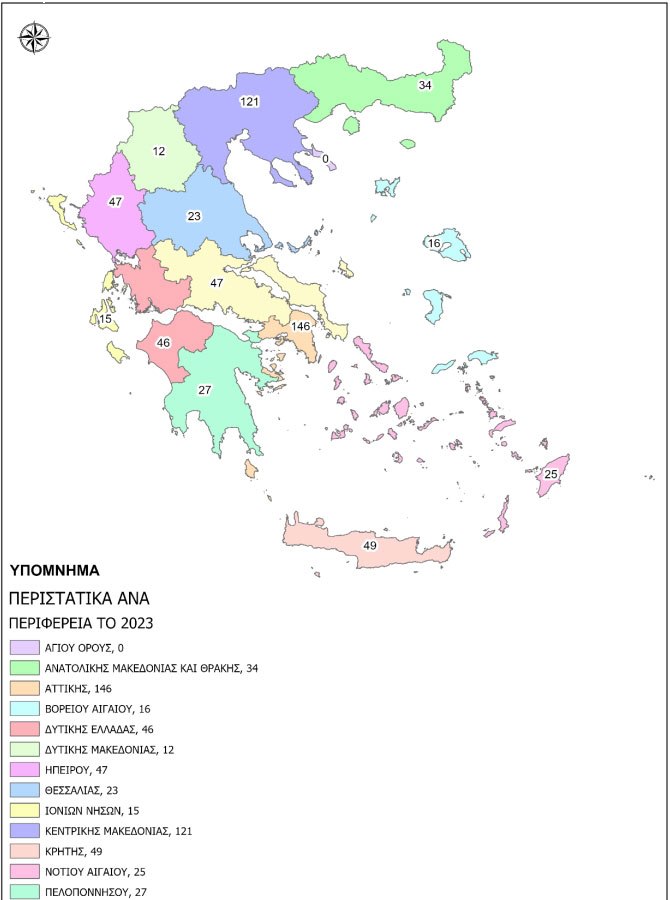 Στο σύνολο στη Στερεά Ελλάδα τα περιστατικά ήταν 47 από 39 την προηγούμενη χρονιά.