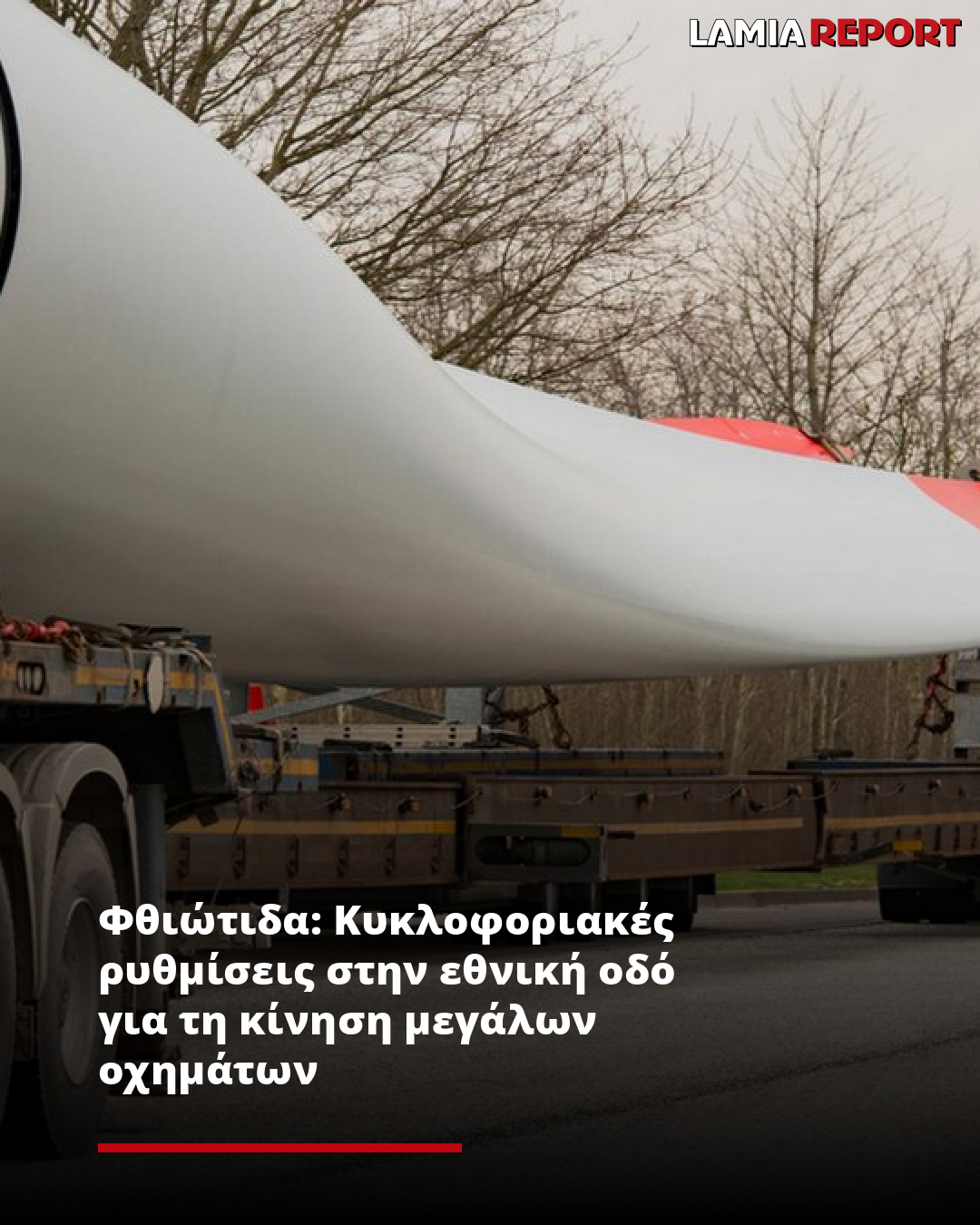 Κυκλοφοριακές ρυθμίσεις ανακοίνωσε η ΔΑ Φθιώτιδας για την κίνηση υπερμεγεθών οχημάτων μεταφοράς τμημάτων ανεμογεννήτριας από το λιμάνι της Στυλίδας και μέσω του ανισόπεδου κόμβου Καραβομύλου/Στυλίδας κι από κει στον ΑΘΕ στο ρεύμα προς Αθήνα.