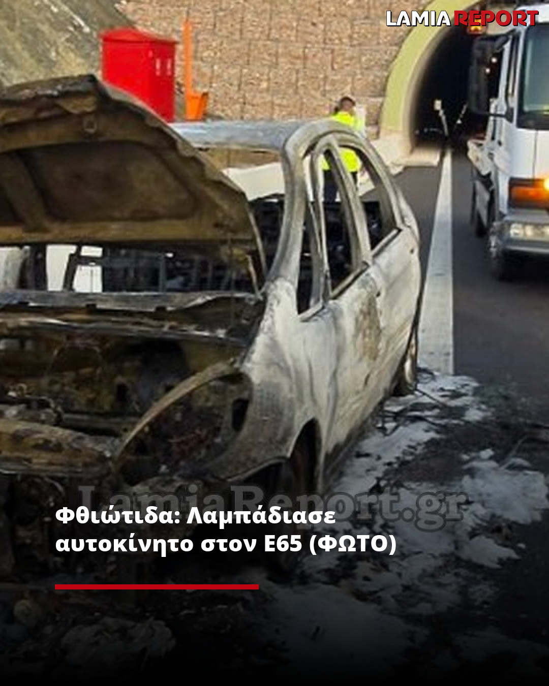 Αμέσως μετά τη σήραγγα στο 30ο χλμ λίγο πριν τον κόμβο Ξυνιάδας, άρχισαν να βγαίνουν καπνοί από τη μηχανή και μέσα σε λίγα λεπτά τυλίχτηκε στις φλόγες.