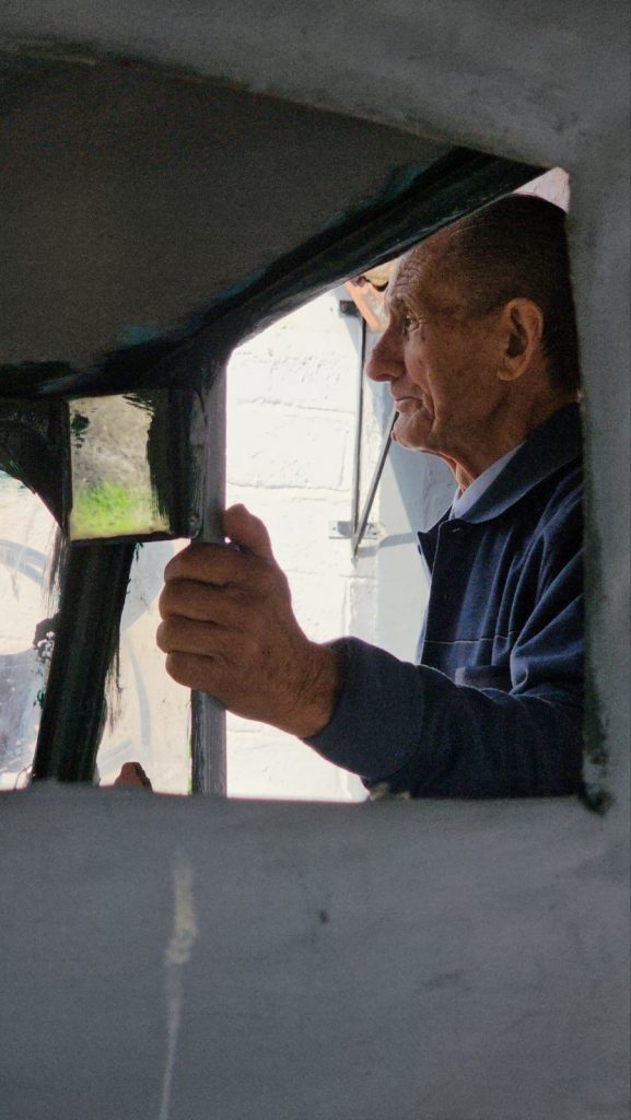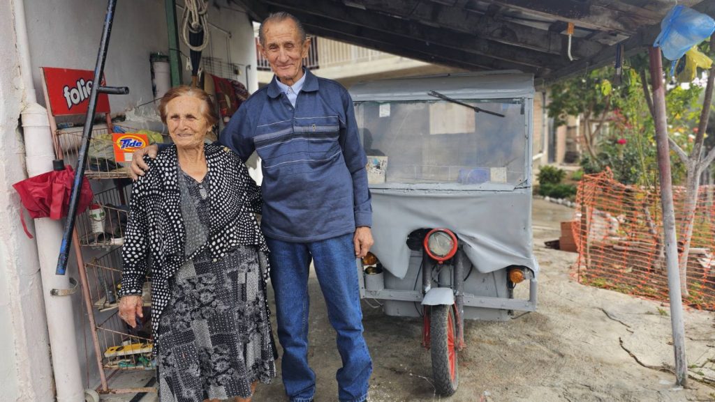 Τον κυρ - Βασίλη τον συναντήσαμε στο φιλόξενο σπίτι του στο Καστρί. Μας περίμενε με τη σύζυγό του την κα Ιφιγένεια να μας δείξει το ηρωικό τρίκυκλο που κάποτε ήταν το σημαντικότερο εργαλείο στη δουλειά του στα χωράφια.