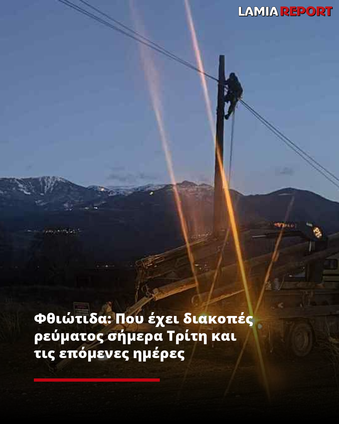 Φθιώτιδα: Που έχει διακοπές ρεύματος σήμερα Τρίτη και τις επόμενες ημέρες