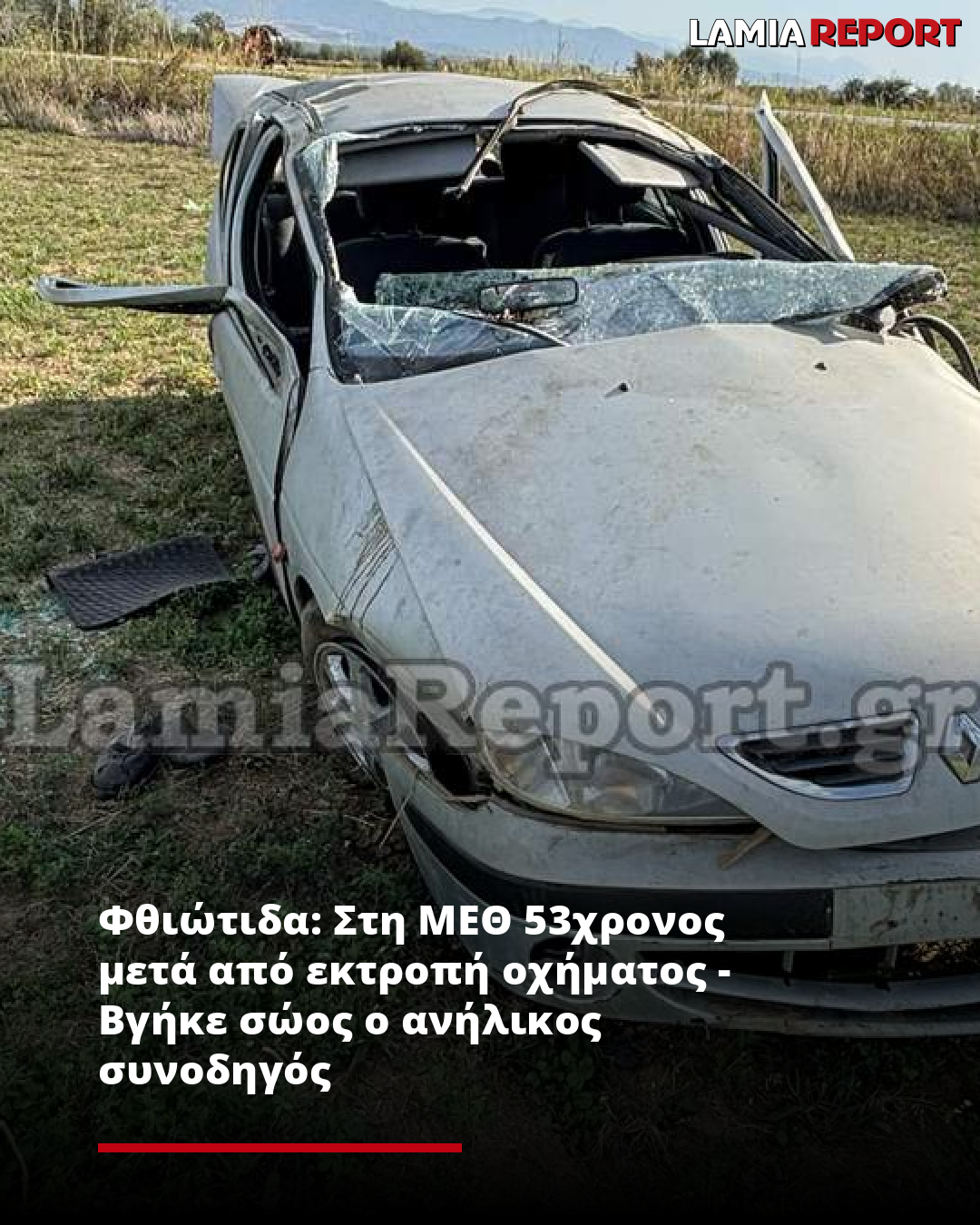 Φθιώτιδα: Στη ΜΕΘ 53χρονος μετά από εκτροπή οχήματος - Βγήκε σώος ο ανήλικος συνοδηγός