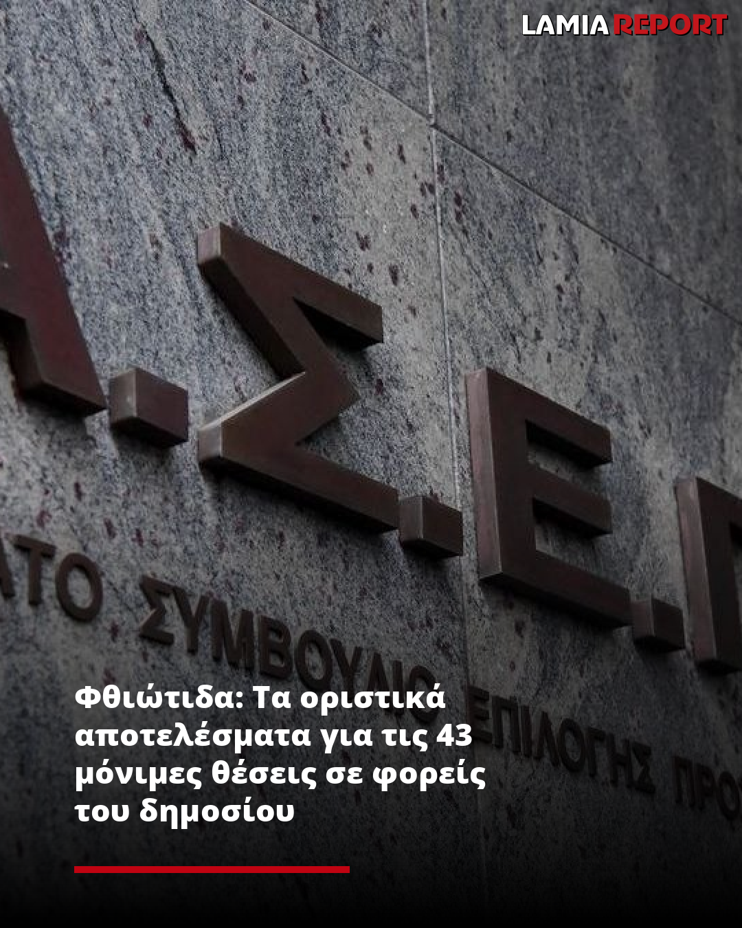 Φθιώτιδα: Τα οριστικά αποτελέσματα για τις 43 μόνιμες θέσεις σε φορείς του δημοσίου