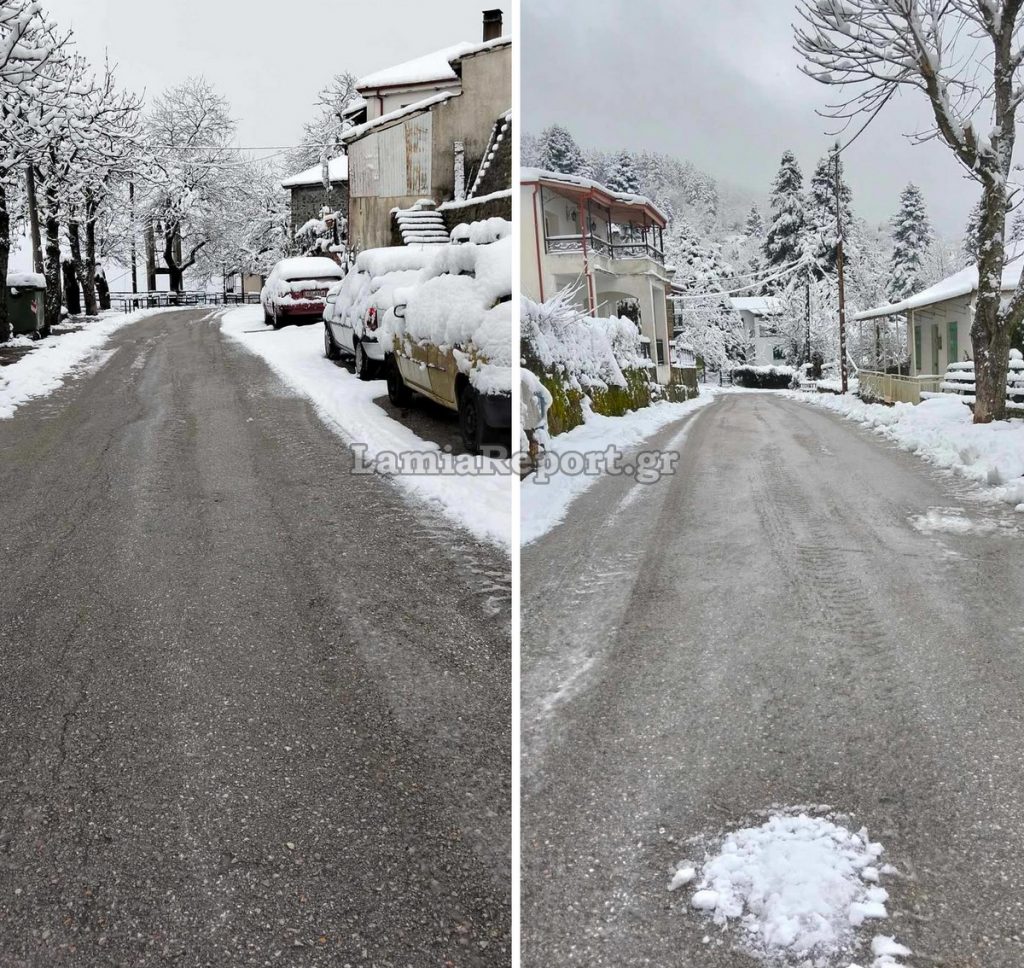 Από 15 μέχρι 20 πόντοι χιόνι, καταγράφηκε στα ορεινά χωριά του Δήμου Μακρακώμης και του Δήμου Λαμιέων, όπως και στο «16» στο δρόμο για Δομοκό.
