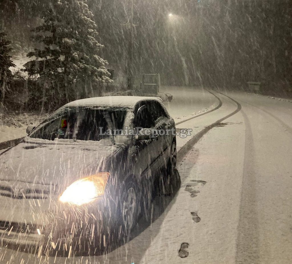 Γενικά το χιόνι έπεσε πυκνό τη νύχτα στο δρόμο Λαμίας - Καρπενησίου: