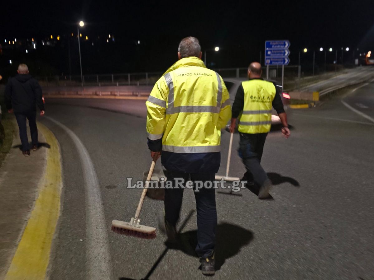 Άμεση ήταν η κινητοποίηση τόσο από μεριάς του τμήματος Τροχαίας Λαμίας αλλά και από τις υπηρεσίες του Δήμου Λαμιέων όπου με οχήματα και προσωπικό έσπευσε να συνδράμει για να ρίξει υλικό, όπου κρίθηκε απαραίτητο.