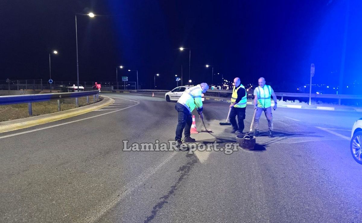 Γέμισαν λάδια το βράδυ οι δρόμοι της Λαμίας (ΦΩΤΟ)
