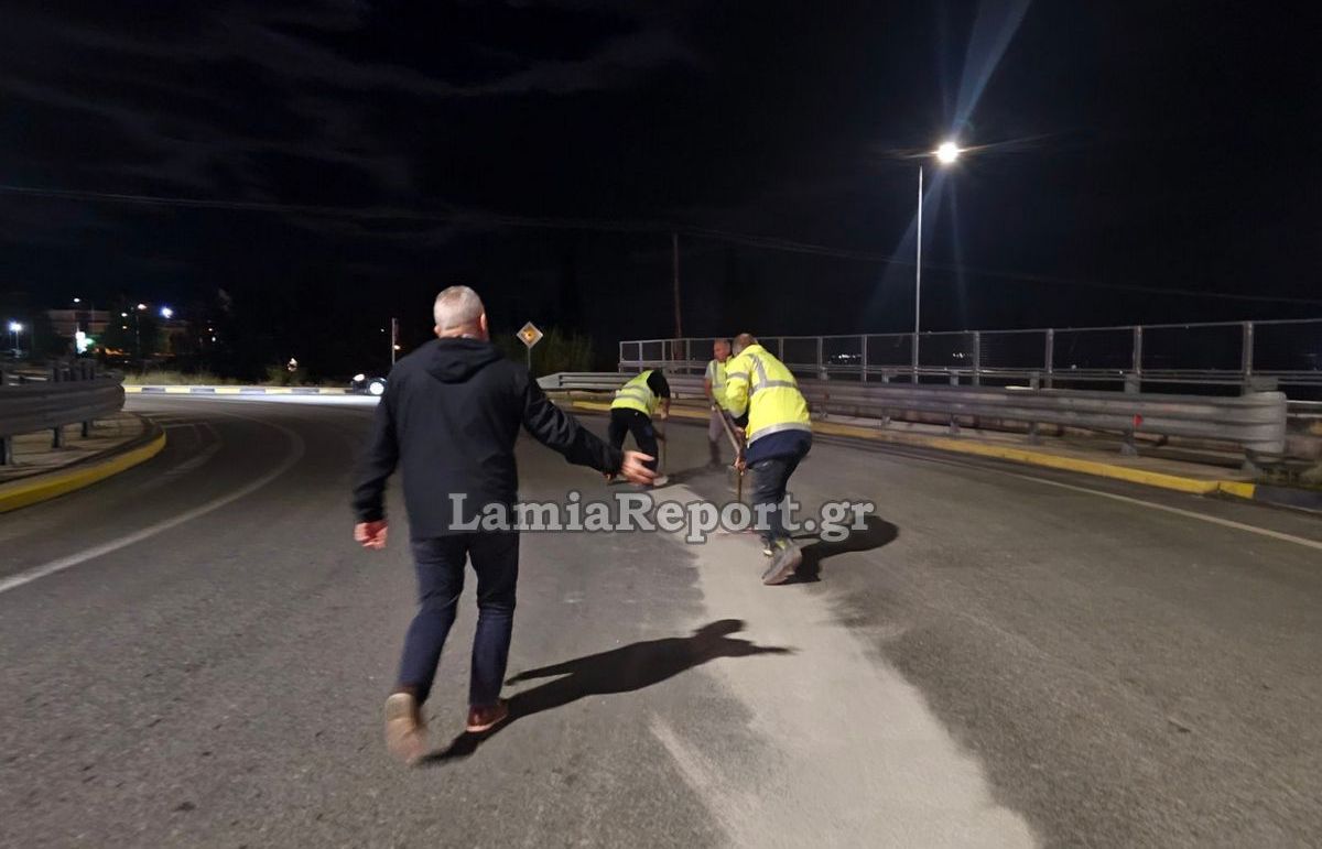 Έτρεχαν αστυνομικοί και υπάλληλοι του δήμου Λαμιέων για να ρίξουν υλικό πριν γίνει κανέναν ατύχημα…