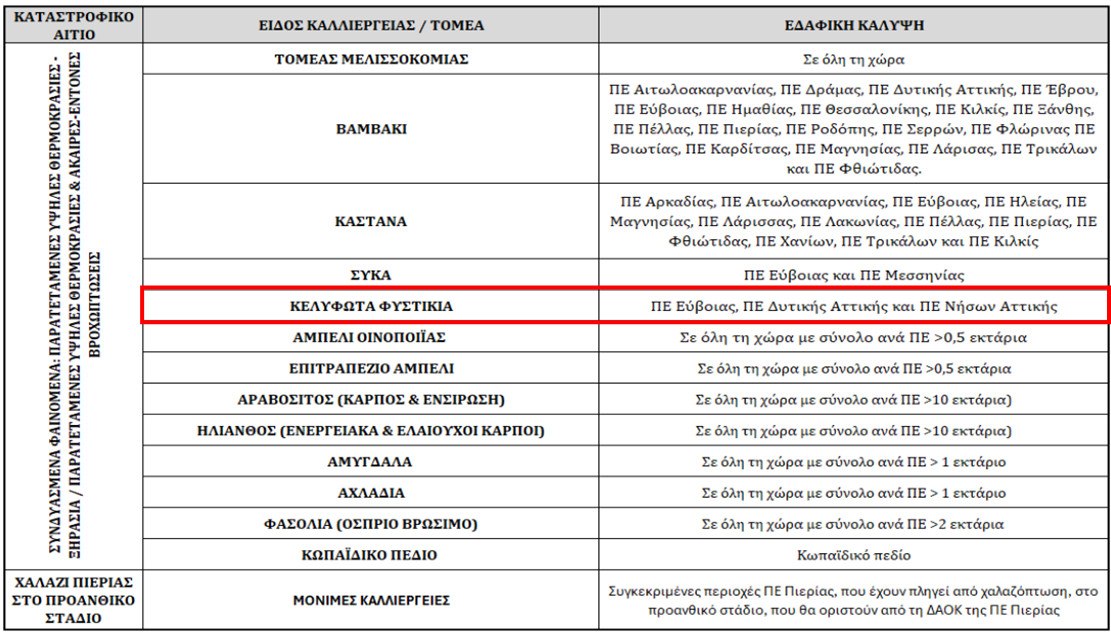 Στην απάντησή του (υπ’ αριθ. πρωτ. 202658/25-07-2025 έγγραφο) ο Υπουργός Αγροτικής Ανάπτυξης και Τροφίμων, επισυνάπτεται ο παρακάτω πίνακας, στον οποίο δεν περιλαμβάνονται οι ελαιοπαραγωγοί ενώ στους φυστικοπαραγωγούς δεν περιλαμβάνονται εκείνοι της Π.Ε. Φθιώτιδας.