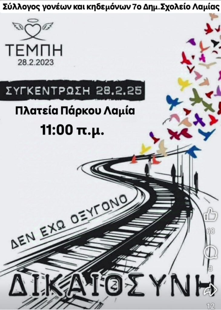 «Ο Σύλλογος Γονέων και Κηδεμόνων του 7ου Δημοτικού Λαμίας δηλώνει ότι θα συμμετέχει στην κινητοποίηση για τα Τέμπη την Παρασκευή 28 Φλεβάρη και ώρα 11:00 π.μ. στην Πλατεία Πάρκου στην Λαμία.