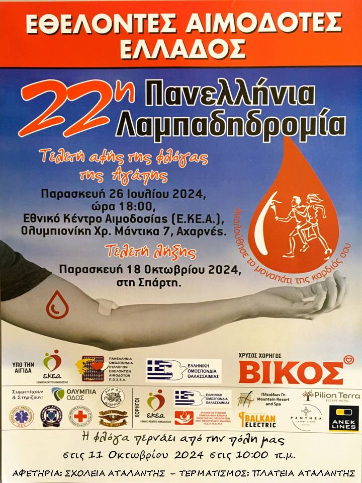 Η 22η Πανελλήνια Λαμπαδηδρομία Εθελοντών Αιμοδοτών περνά από την Αταλάντη