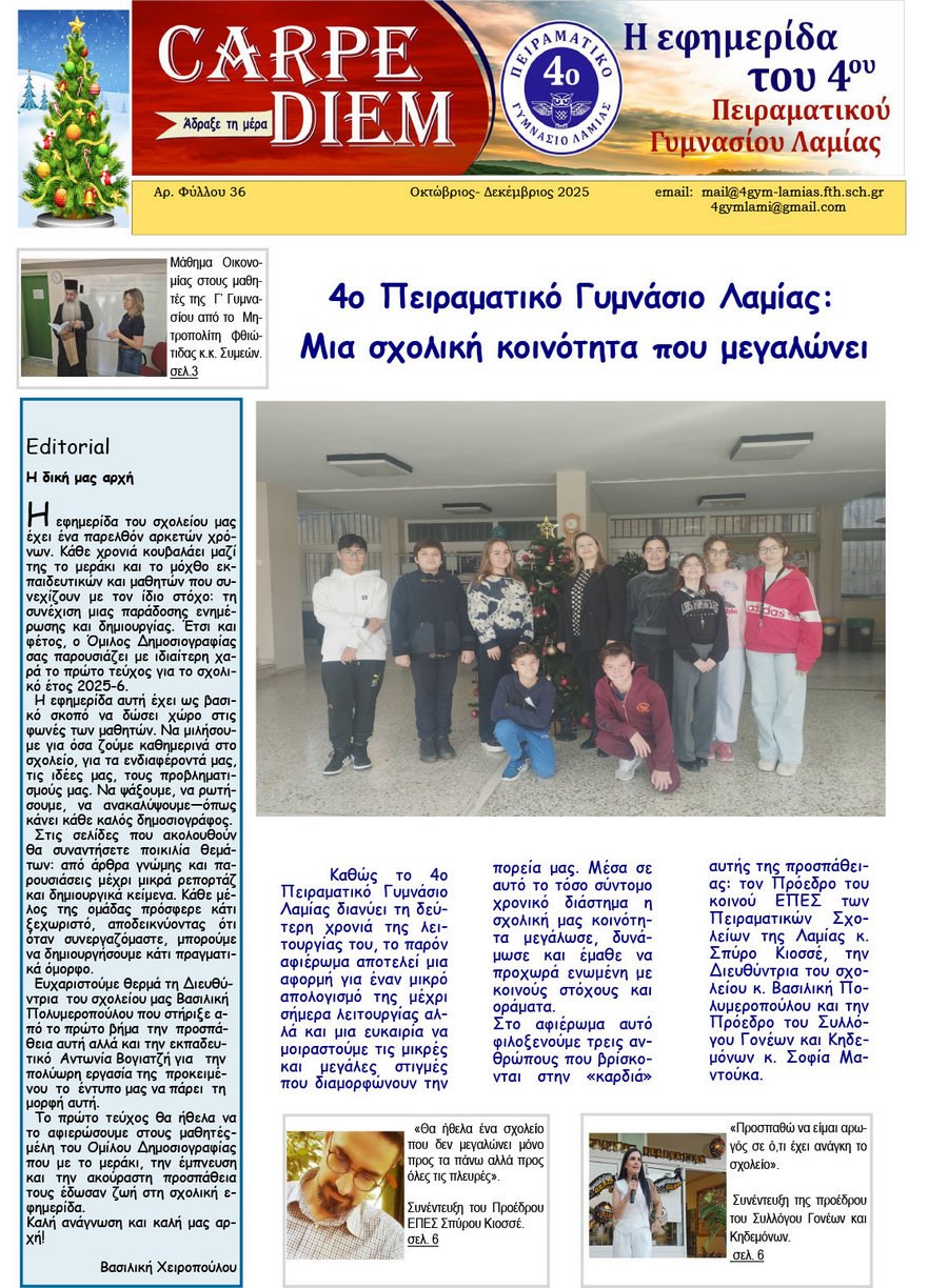 Η εφημερίδα του 4ου Πειραματικού Γυμνασίου Λαμίας έφτασε στον αριθμό 36