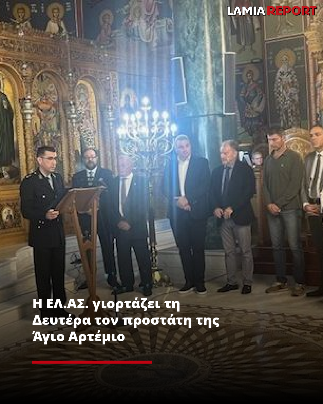Στο πλαίσιο του εορτασμού της «Ημέρας της Ελληνικής Αστυνομίας», ανήμερα της 20ης Οκτωβρίου 2025, ημέρα Δευτέρα και ώρα 10:00, θα τελεστεί στον Ιερό Μητροπολιτικό Ναό Ευαγγελισμού της Θεοτόκου στη Λαμία, Δοξολογία για τον εορτασμό του Αγίου Αρτεμίου, χοροστατούντος του Σεβασμιωτάτου Μητροπολίτη Φθιώτιδας, κκ Συμεών.