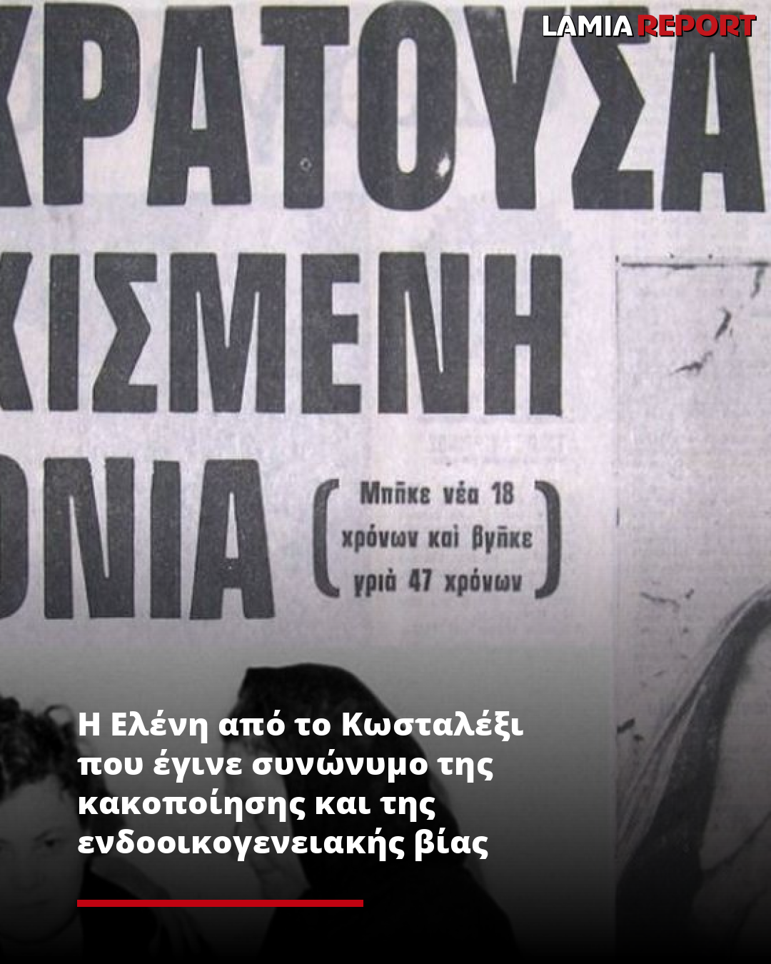 Ήταν 6 Νοεμβρίου του 1978, όταν αποκαλύπτεται λίγα χιλιόμετρα έξω από τη Λαμία μια ανθρώπινη τραγωδία. Μία 47χρονη γυναίκα η Ελένη Καρυώτη βρίσκεται κλειδωμένη μέσα σε άθλιες συνθήκες στο ισόγειο ενός διώροφου σπιτιού στο Κωσταλέξι.