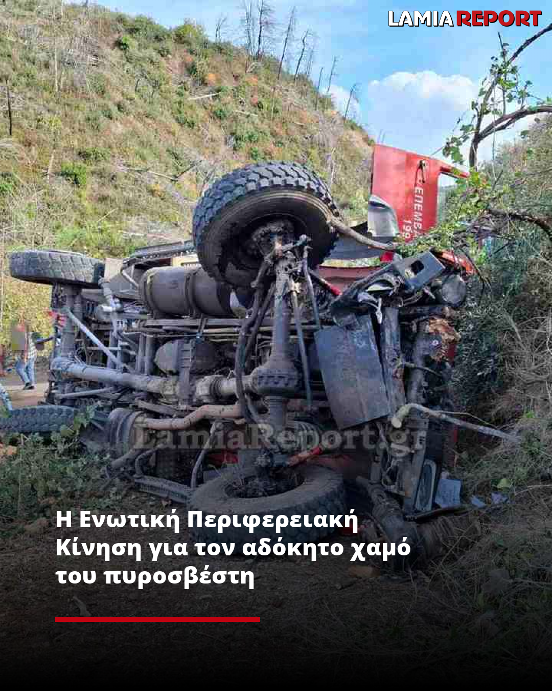 Οι Περιφερειακοί Σύμβουλοι της Ενωτικής Περιφερειακής Κίνησης – Απόστολος Γκλέτσος εκφράζουν τα ειλικρινή τους συλλυπητήρια για τον άδικο χαμό του πυροσβέστη όπου εν ώρα υπηρεσίας και για άγνωστο λόγο χάθηκε ο έλεγχος του οχήματος και αυτό κατέληξε σε χαράδρα, στην Κοτσικιά Ευβοίας το μεσημέρι της Παρασκευής (1/11).