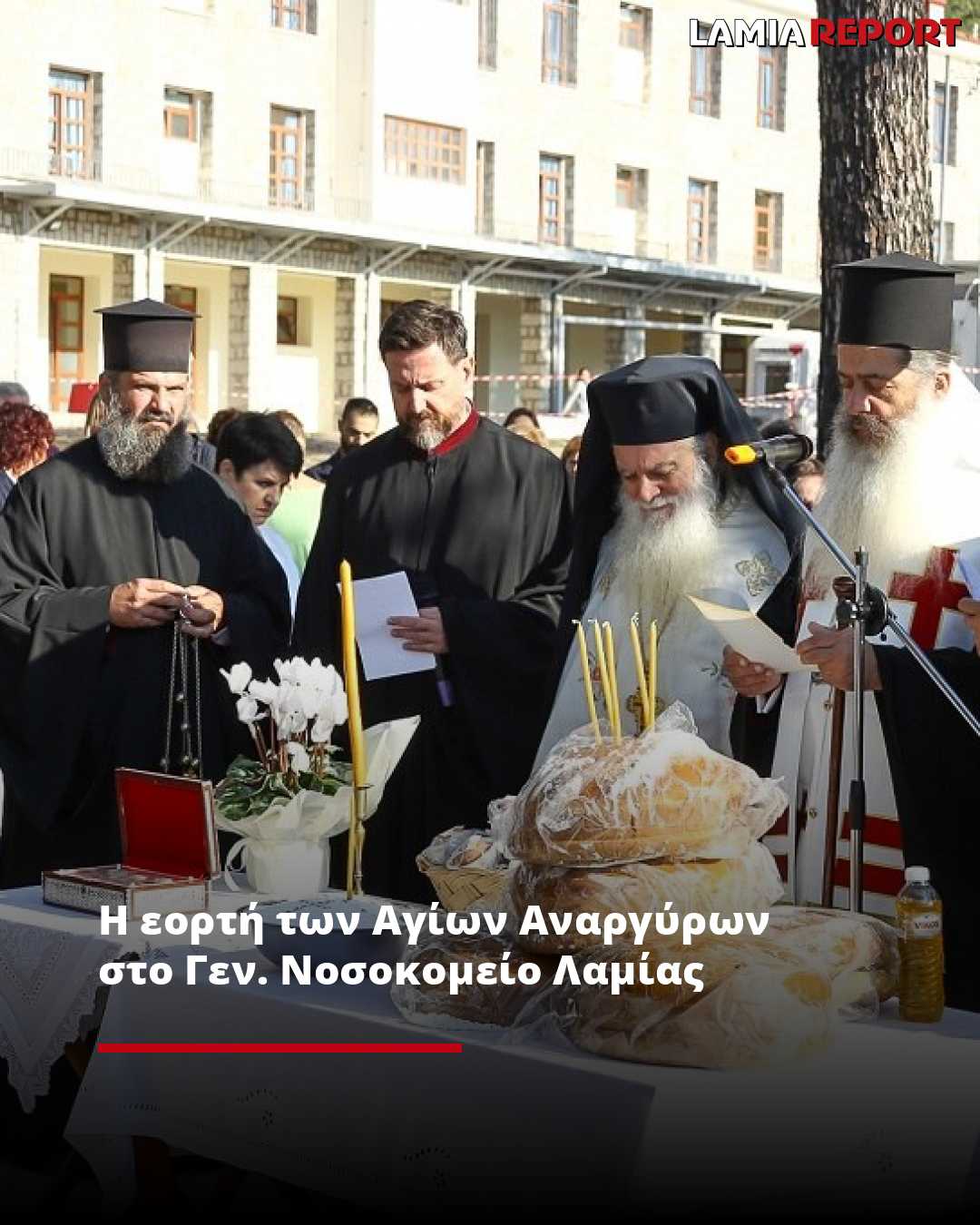 Στο Ιερό Παρεκκλήσιο των Αγίων Αναργύρων Κοσμά και Δαμιανού στον πευκόφυτο περίβολο του Γενικού Νοσοκομείου Λαμίας εορτάστηκε σήμερα η μνήμη των μεγάλων ιατρών της Εκκλησίας μας υπό του Σεβασμιιωτάτου Μητροπολίτου Φθιώτιδος κ. Συμεών, παρουσία του Διοικητού του Γενικού Νοσοκομείου Λαμίας κ. Ανδρέα Κολοκυθά, του ιατρικού, διοικητικού και νοσηλευτικού προσωπικού, καθώς και πολλών πιστών και συνοδών των ασθενών του Νοσοκομείου, ενώ ετέθησαν από τον Σεβασμιώτατο προς προσκύνηση και τεμάχια εκ των Ιερών Λειψάνων των Αγίων Αναργύρων, Κοσμά, Δαμιανού και Παντελεήμονος.
