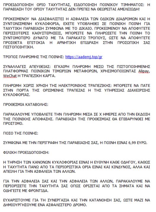 Με νέο μήνυμα SMS που αποστέλλεται σε κινητά τηλέφωνα, επιτήδειοι προσπαθούν να εξαπατήσουν τους πολίτες μέσω ψευδών ειδοποιήσεων περί δήθεν επιβολής «ποινής» ή «προστίμου» για υπέρβαση ορίου ταχύτητας.