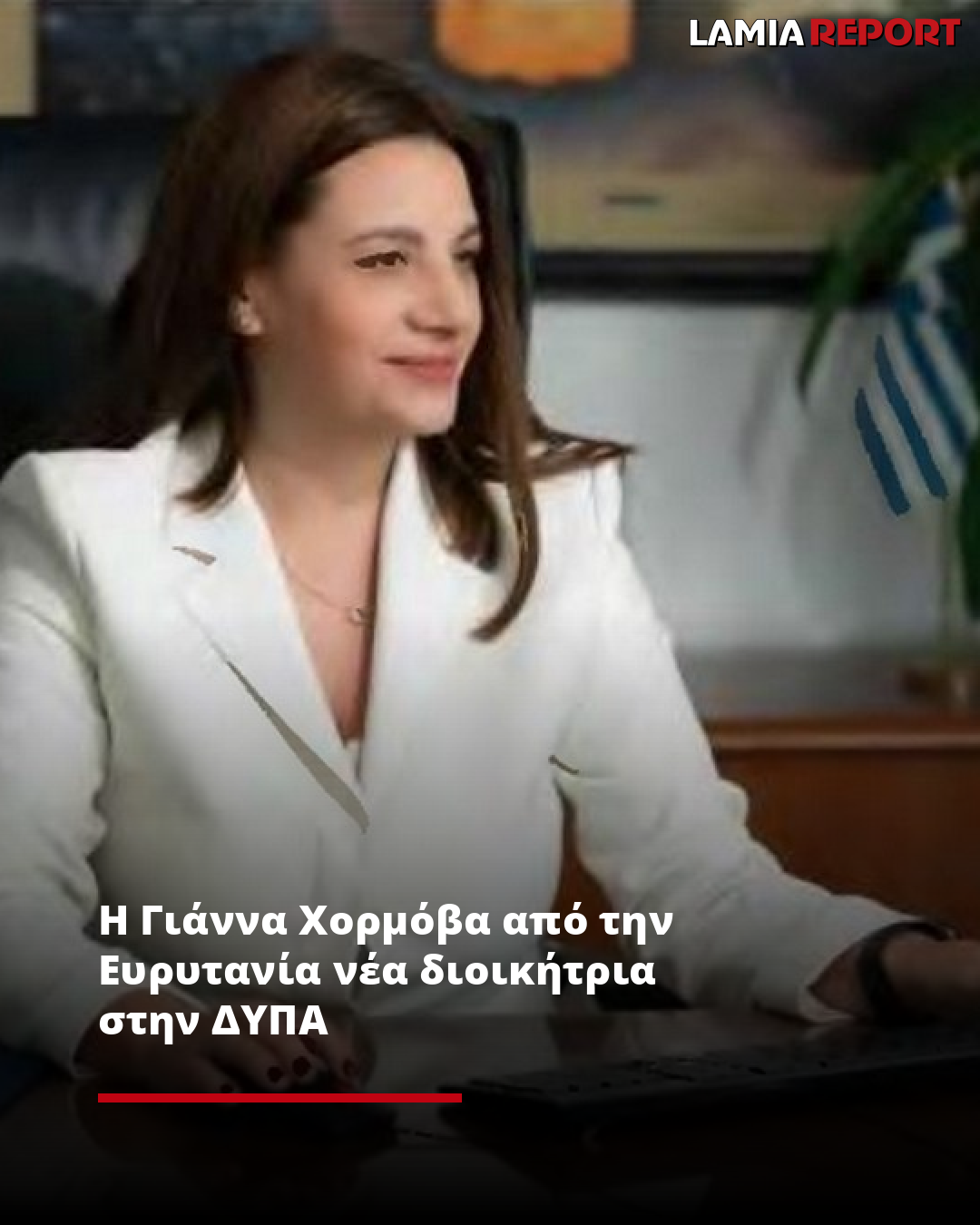 Η μέχρι πρότινος υποδιοικήτρια της ΔΥΠΑ, Γιάννα Χορμόβα από την Ευρυτανία, διοικητικός επιστήμονας και εμπειρογνώμων δημόσιων πολιτικών, αναλαμβάνει το τιμόνι της Δ.ΥΠ.Α. στη θέση του Σπύρου Πρωτοψάλτη που μετακινήθηκε στη Γενική Γραμματεία του ΥΠΑΑΤ.