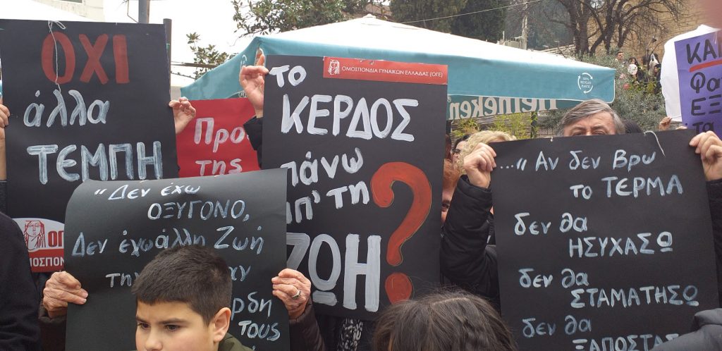 - την πολιτική που ευθύνεται που η εργαζόμενη στενάζει από την ακρίβεια και τα εισοδήματα πείνας, τσακίζει την αυτοαπασχο-λούμενη με τους φόρους και τα δυσβάσταχτα χρέη και ξεκληρίζει την αγρότισσα, εφαρμόζει νόμους που εμπορευμα-τοποιούν και κόβουν τις δαπάνες στην Υγεία, την Παιδεία, στην Πρόνοια, στην προστασία από τις φυσικές καταστροφές.