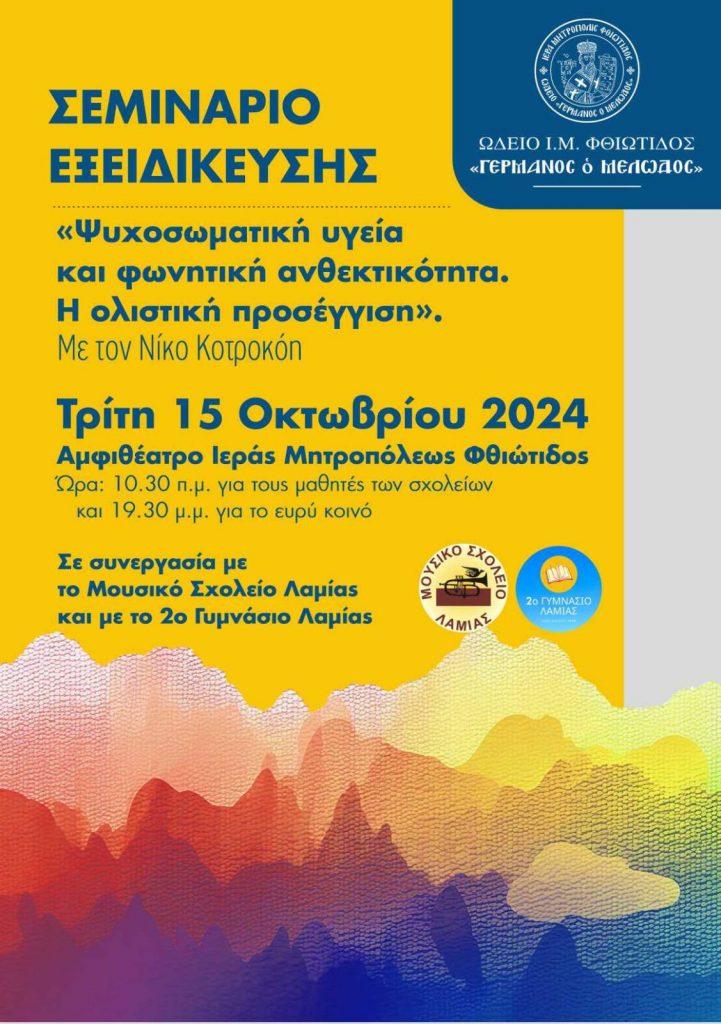 Ιερά Μητρόπολη Φθιώτιδας: Σεμινάριο Εξειδίκευσης με θέμα «Ψυχοσωματική υγεία και φωνητική ανθεκτικότητα - Η ολιστική προσέγγιση»