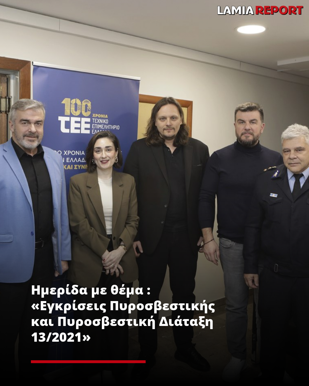 Το Τ.Ε.Ε. – Τμήμα Ανατολικής Στερεάς Ελλάδας, σε συνεργασία με τον Πανελλήνιο Σύλλογο Διπλωματούχων Μηχανολόγων – Ηλεκτρολόγων Μηχανικών (Περιφερειακό Τμήμα Φθιώτιδας), διοργάνωσε χθες Πέμπτη 19 Φεβρουαρίου 2026 με ιδιαίτερη επιτυχία ημερίδα με θέμα : «Εγκρίσεις Πυροσβεστικής και Πυροσβεστική Διάταξη 13/2021».