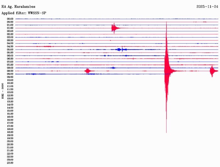Παρακάτω βλέπετε πως τον κατέγραψε ο σεισμογράφος στο Άγιο Χαράλαμπο Μώλου, 99 χιλιόμετρα μακριά από το επίκεντρο!