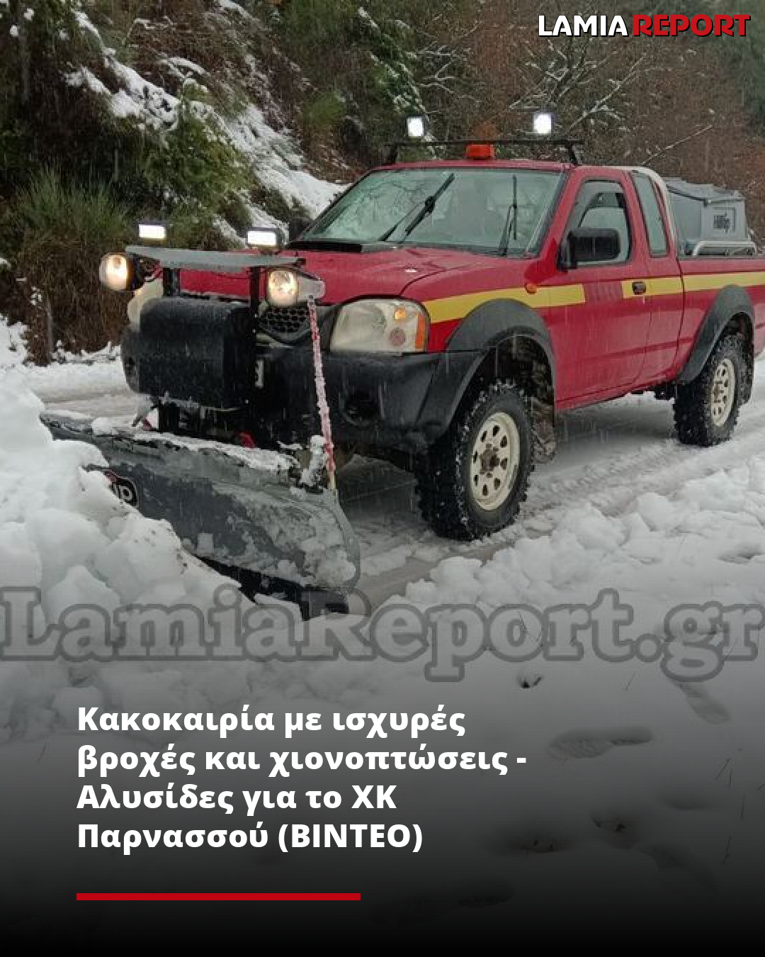 Κακοκαιρία με ισχυρές βροχές και χιονοπτώσεις - Αλυσίδες για το ΧΚ Παρνασσού (ΒΙΝΤΕΟ)