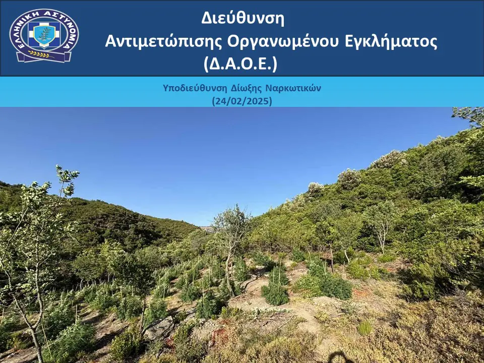 Για την υπόθεση πραγματοποιήθηκε συντονισμένη αστυνομική επιχείρηση από αστυνομικούς της Υποδιεύθυνσης Δίωξης Ναρκωτικών, πρωινές ώρες της Τετάρτης 24 Ιουλίου 2025, στη Δυτική Αττική, καθώς και σε δύσβατες δασώδεις περιοχές της Βοιωτίας και Ευβοίας, με τη συνδρομή επιχειρησιακών ομάδων Ο.Π.Κ.Ε., υπηρεσιών της Δ.Α.Ο.Ε. και της Διεύθυνσης Εναέριων Μέσων.